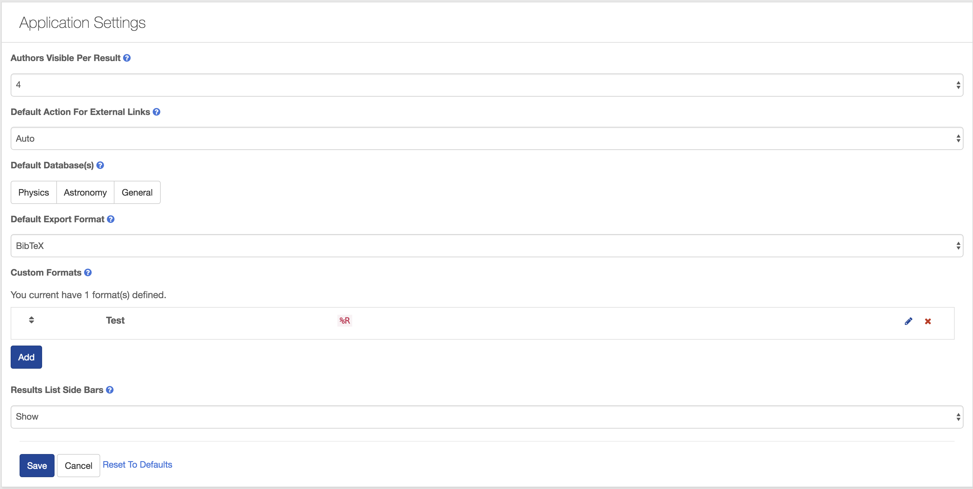- Set a default database(s) to search in, e.g. you can choose to only search in the astronomy collection by default