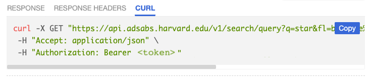 You can scroll through the search results here, or you can click on the “curl” tab to copy the request formatted using your input parameters to use in your own scripts.