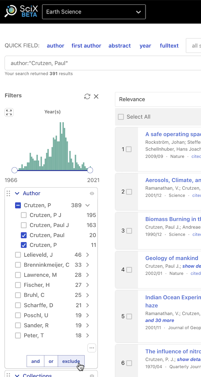 Tip 3: SciX lets you filter authors, which is useful when many people have the same first or last name.