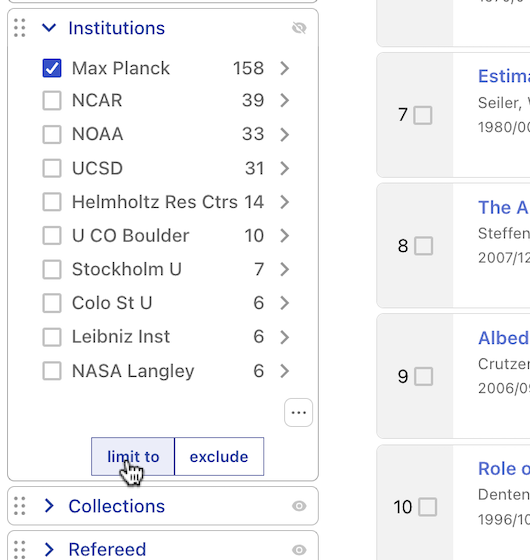 With both the author and institutions filters, I can quickly narrow my search down to the right author I am looking for.